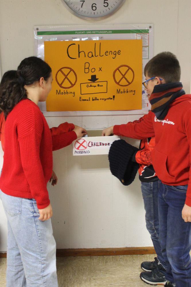 Bereits in der Woche zuvor hatte der Wahlpflichtkurs Pädagogik aus dem Jahrgang 10 einen Kuchenverkauf organisiert, dessen Erlös an den Verein „Zeichen gegen Mobbing e.V.“ gespendet wurde.