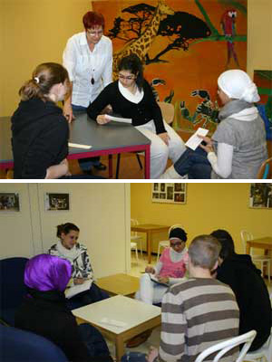 Die Schülermediatoren arbeiten im Zweier-Team. Sie stellen den Streitenden einen geschützten Rahmen zu Verfügung, in dem die Konfliktparteien ihre Interessen vorbringen und miteinander verhandeln können, ohne weitere Kränkungen erleben zu müssen.