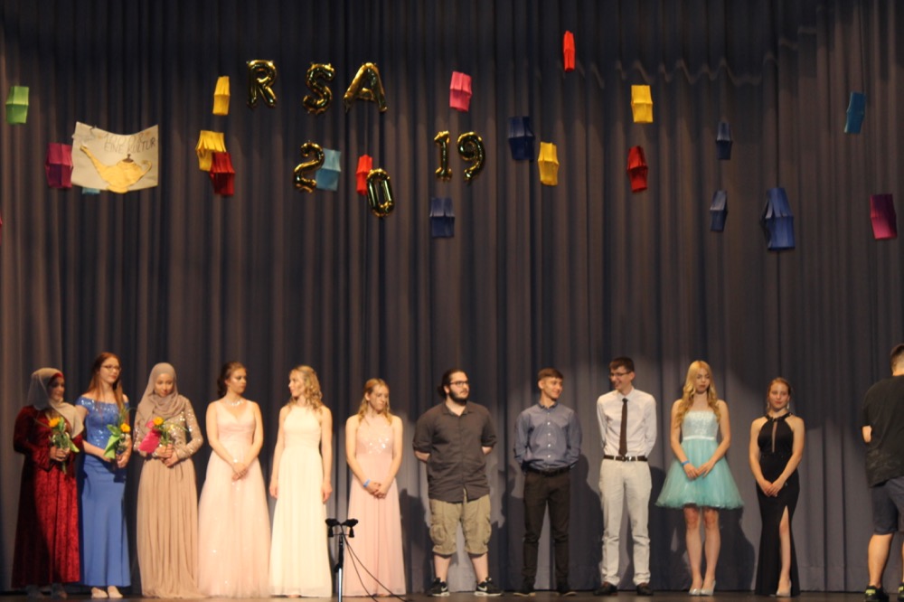 Das Programm des Abends sowie die Dekoration des Saales haben die Klassen selbst gestaltet und es scheint beim Betrachten der Bilder, dass alle Beteiligten mit der Verabschiedung sehr zufrieden waren.