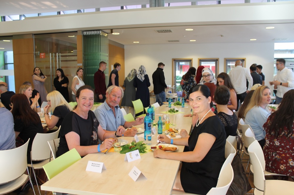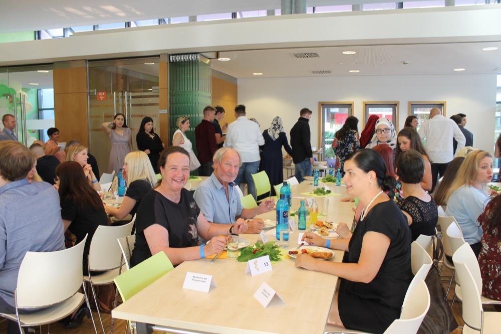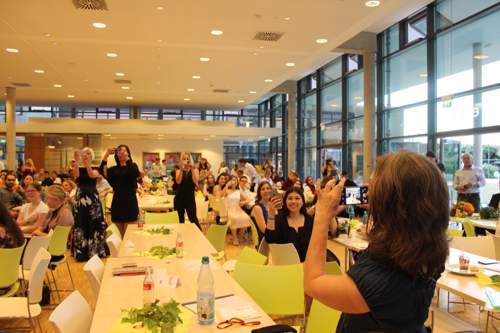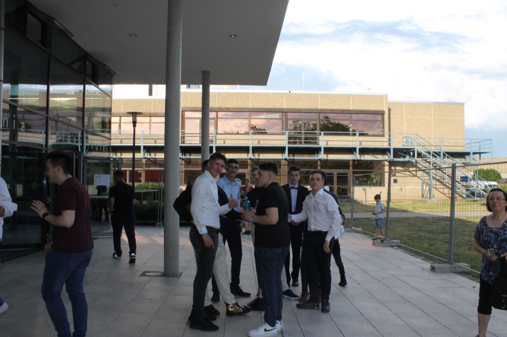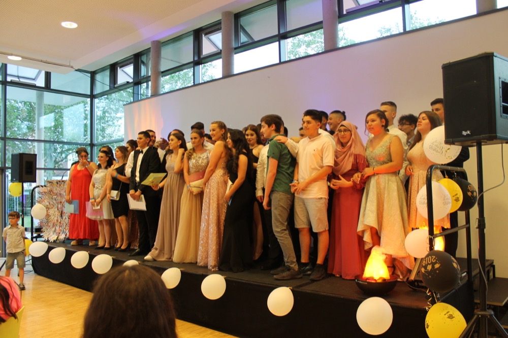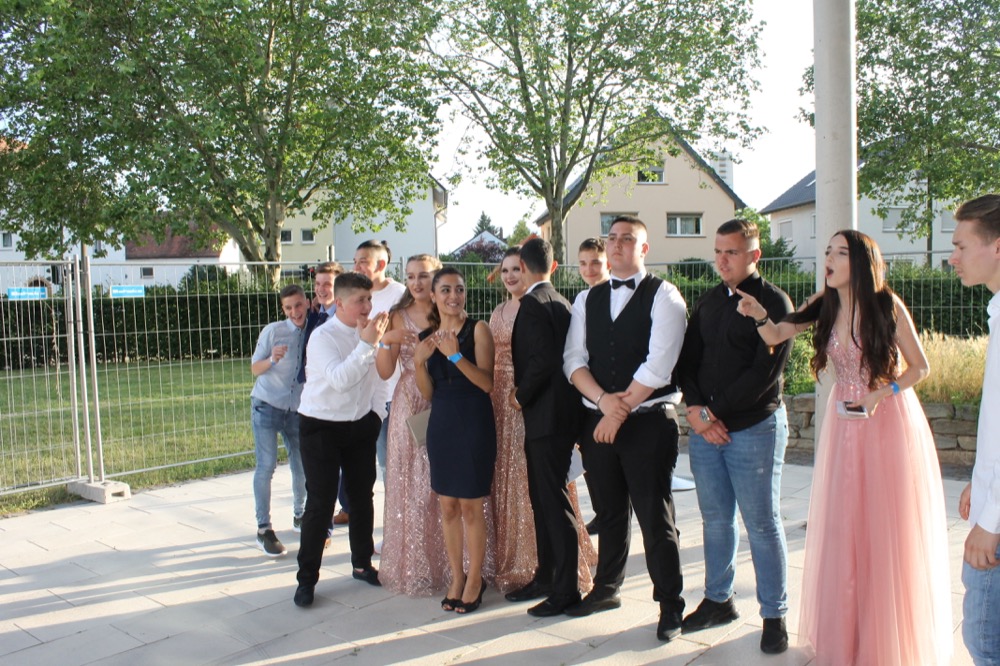 Die Verabschiedung der Schülerinnen und Schüler aus dem Jahrgang 9 findet in der Regel gemeinsam mit der Verabschiedung des Jahrganges 10 im Fritz-Treutel-Haus statt. Aufgrund der hohen Abgängerzahlen von "Neunern" in diesem Jahr gab es jedoch eine Premiere am Mittwoch, den 19.6.19: Die Hauptschülerinnen und Hauptschüler erhielten eine eigene Abschlussfeier im Stufensaal und in der Mensa der Schule. Das Programm wurde liebevoll von den Abgängern, ihren Klassenkameraden und ihren Klassenlehrerinnen und Klassenlehrern gestaltet. Und man muss sagen: Es hat sich gelohnt! Die Schulgemeinde wünscht den Abgängern auf ihrem weiteren Weg, sei es an der Berufsschule, der Berufsfachschule oder in einer Ausbildung viel Glück!