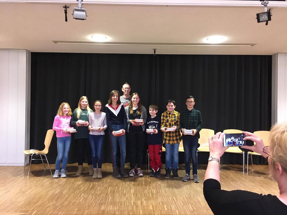 Am Mittwochnachmittag, den 20.2. 2019, war es soweit: Ilay Soytürk fuhr mit den Großeltern zur Unterstützung in die Johannes-Gutenberg-Schule nach Gernsheim. 7 weitere Schulsiegerinnen und Schulsieger aus dem Kreis waren angereist. Das Prozedere war wie beim Vorlesewettbewerb in der IGS: Zuerst wurde ein eigener Text gelesen, dann musste man einen fremden Text sponat interpretieren. Ilay las Passagen aus „Sofies Welt“ von Jostein Gaarder - für einen 12 - Jährigen schon eine beachtliche Auswahl! Der fremde Text entstammte dem Buch „Luzifer Junior - Zu gut für die Hölle“ von Jochen Till. Die Jury, bestehend aus Jochen Till, einem weiteren Autor, zwei Vertretern der Gernsheimer Schulen sowie einer Buchhändlerin entschied klar: Ilay war der Beste!