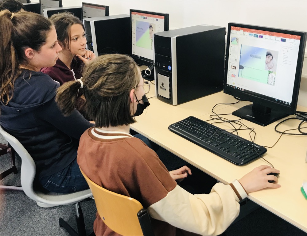 Am Dienstag, den 24.05.2022, nutzte die Klasse 6.2, die im Rahmen des GL Unterrichts PowerPoint Präsentationen zu unterschiedlichen Themen erarbeiten sollte, das Lernangebot der Arbeitsgruppe WPB 2. Neben der Vermittlung von Basics (korrekte Benutzung des USB-Sticks, Einfügen von Bildern, Schriftgröße und -arten, etc.) lag der Schwerpunkt auf dem Erstellen bzw. Verfeinern der Präsentationen mit Gestaltungsmöglichkeiten (Farbenwahl, Hintergründe, Einbau von Bildern und Texten).