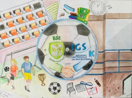Fußball verbindet nicht nur über Grenzen und Kulturen hinweg, sondern eignet sich auch hervorragend als Medium zur Vermittlung sozialer Werte und Mittel, um am gesellschaftlichen Leben teilzuhaben. Ein vierköpfiges Lehrkräfteteam der IGSK machte sich zur Aufgabe, die integrative Kraft des Fußballs zu nutzen, um Schüler*innen der Jahrgangsstufen acht bis zehn Werte wie Fairplay, Toleranz, Disziplin, Respekt und Teamgeist zu vermitteln. Dabei war es wichtig, mit einem verlässlichen Fußballverein mit Tradition zusammenzuarbeiten, um sich über Erfahrungen und Projektideen auszutauschen, zumal viele Schüler*innen der IGSK aktive Vereinsmitglieder sind. ,,Durch die Kooperationsvereinbarung mit dem städtischen Fußballverein BSC 47 Kelsterbach ist es uns gelungen, einen zuverlässigen Kooperationspartner zu gewinnen, der von erfahrenen Vorstandsmitgliedern und einem Abteilungsleiter sowie von einem kompetenten Jugendleiter geführt wird‘‘, so Ahmet Agcadag (Koordinator der Fußball AG). Der Deutsche Fußballbund (DFB) unterstützt das Vorhaben im Rahmen ihres Projektes „Schule und Verein: gemeinsam am Ball!“ und belohnt beide Seiten mit Starter-Kits und weiteren Projekten.